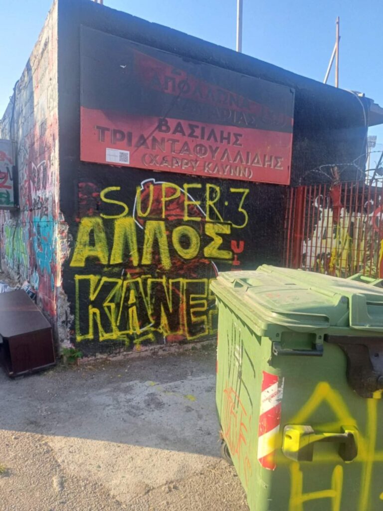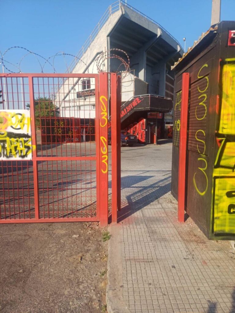 Οπαδοί του Άρη, μετά την ανακοίνωση του Απόλλων Καλαμαριάς ότι παραχωρεί το γήπεδο για τους αγώνες του ΠΑΟΚ Β, έκαναν ζημιές και έγραψαν συνθήματα στους χώρους του γηπέδου, το βράδυ της Τρίτης (22/7).