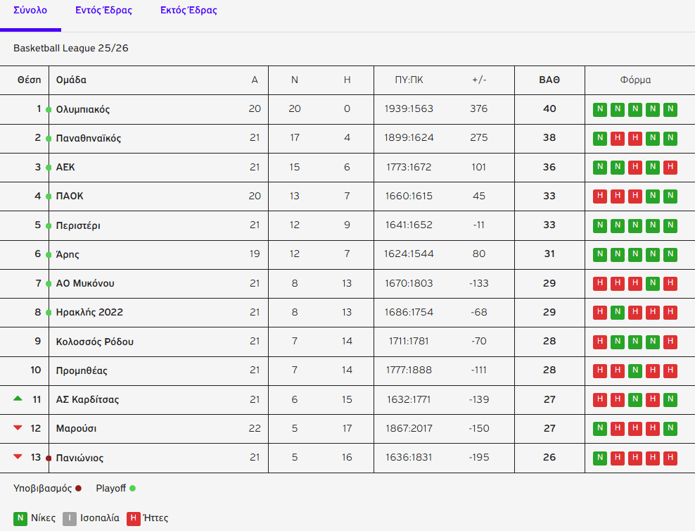 Με τη νίκη επί του Προμηθέα και ταυτόχρονα την ήττα της ΑΕΚ από το Περιστέρι, η ομάδα του Παντελή Μπούτσκου, πλέον, απέχει δύο νίκες από τους «κιτρινόμαυρους», έχοντας κι ένα ματς λιγότερο (το ντέρμπι κόντρα στον Άρη).