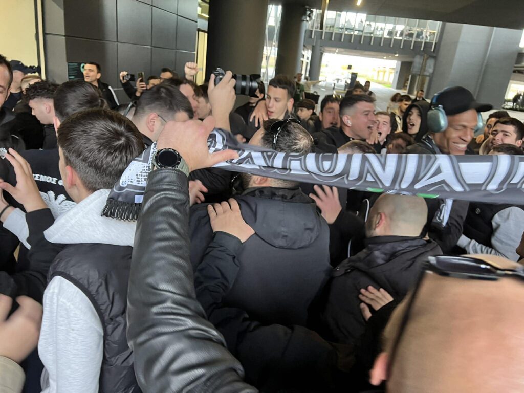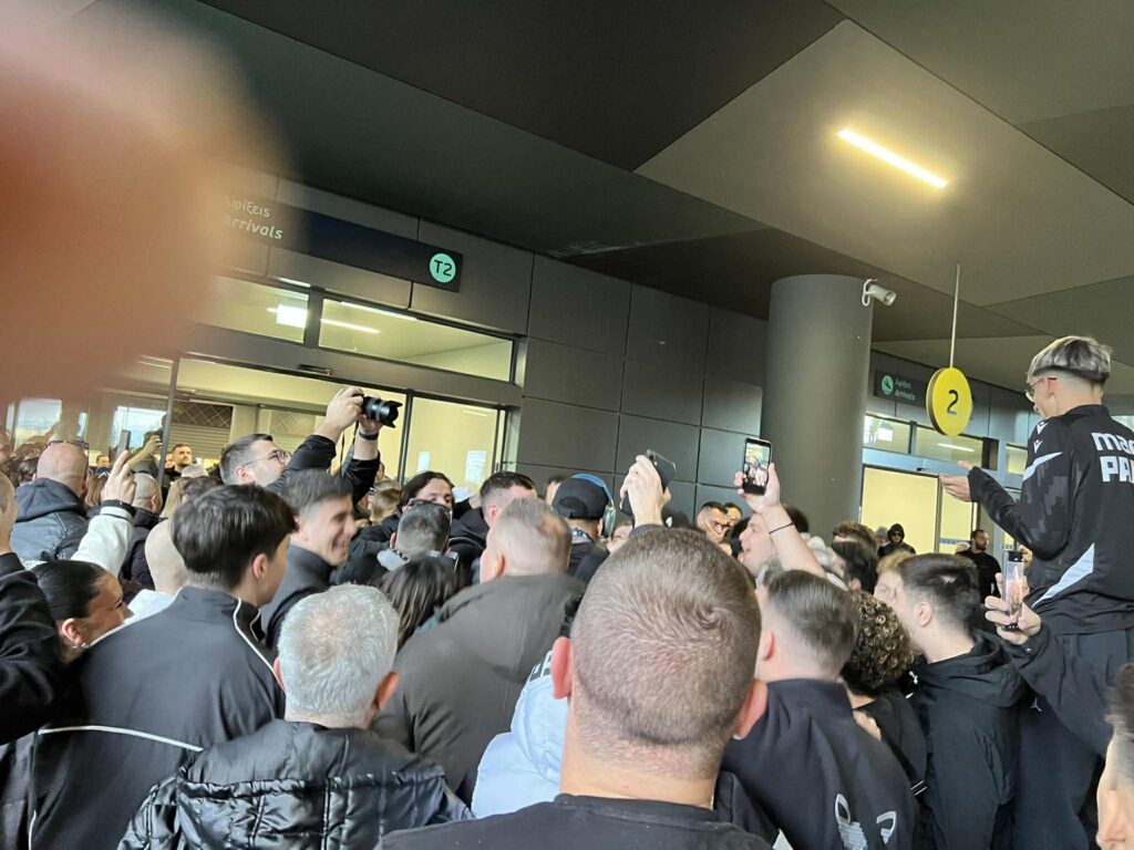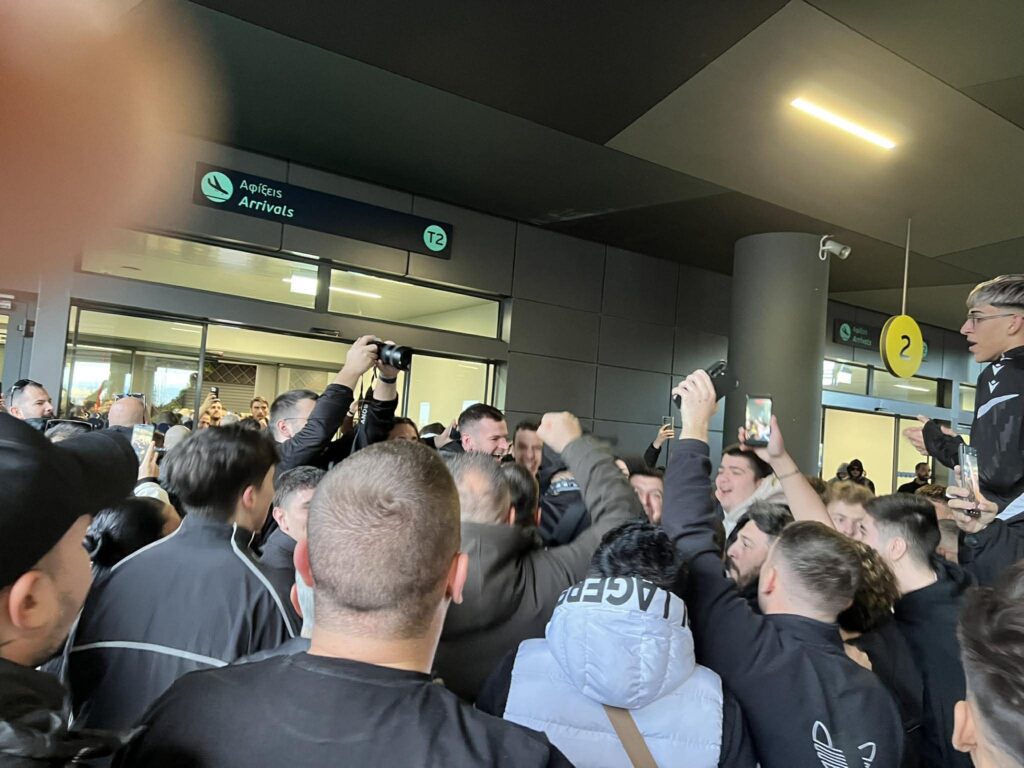 Οι παίκτες του Δικεφάλου έφτασαν στο αεροδρόμιο «Μακεδονία» και εκεί γνώρισαν την αποθέωση περίπου 200 οπαδούς της ομάδας που έδωσε το παρόν μετά από μία σπουδαία βραδιά.