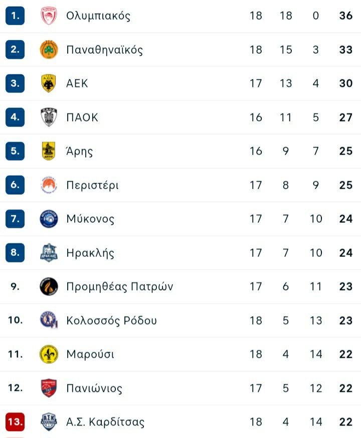H βαθμολογία μετά τη νίκη του Κολοσσού: