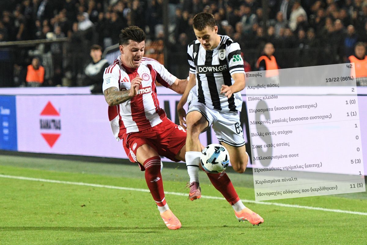Στατιστικά, η απόδοσή του ήταν εξίσου εντυπωσιακή. Ο διεθνής μεσοεπιθετικός ολοκλήρωσε το ματς με ποσοστό ακρίβειας στις πάσες 86% (19/22), εκ των οποίων δύο χαρακτηρίστηκαν «κλειδιά», ανοίγοντας το παιχνίδι του ΠΑΟΚ. Στις προσωπικές μονομαχίες κατέγραψε 5 κερδισμένες από τις 11, ενώ επιχείρησε πέντε ντρίμπλες, με τις δύο να γίνονται στη φάση του κερδισμένου πέναλτι. Παράλληλα, κέρδισε συνολικά δύο φάουλ, αποδεικνύοντας πόσο δύσκολα αντιμετωπίζεται από κάθε αντίπαλη άμυνα.