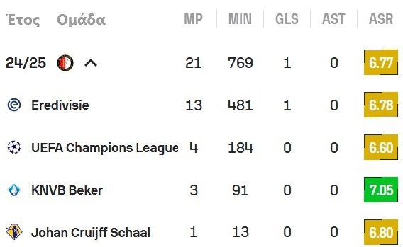 • 2.93 επαφές εντός περιοχής ανά 90’