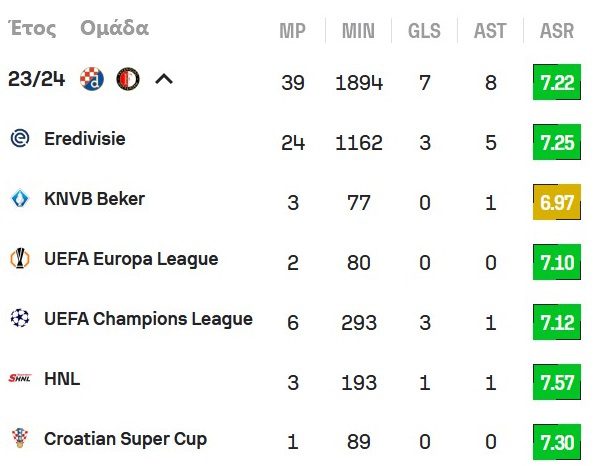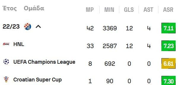 Στατιστικά, στη σύγκριση με εξτρέμ και μέσους κάτω των 23 ετών από τα πέντε κορυφαία πρωταθλήματα της Ευρώπης (με τουλάχιστον 600 λεπτά συμμετοχής), συμπεριλαμβανομένων των ευρωπαϊκών διοργανώσεων. Παρότι το κροατικό πρωτάθλημα υστερεί σε ποιότητα, τα στοιχεία του δείχνουν ολοκληρωμένες επιθετικές ικανότητες: