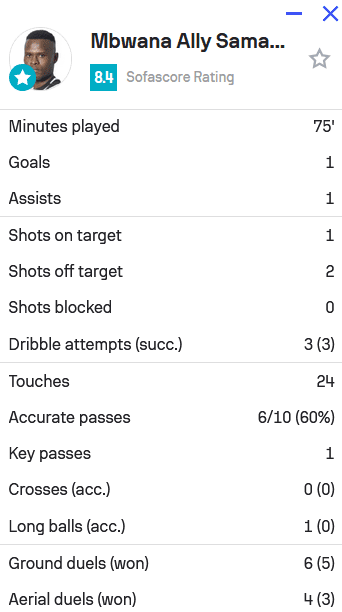 Στην αναμέτρηση με τον Αστέρα Τρίπολης, ο Σαμάτα είχε το απόλυτο στις ντρίμπλες (3/3) ενώ έχασε μόλις δυο από τις συνολικά δέκα μονομαχίες που έδωσε.