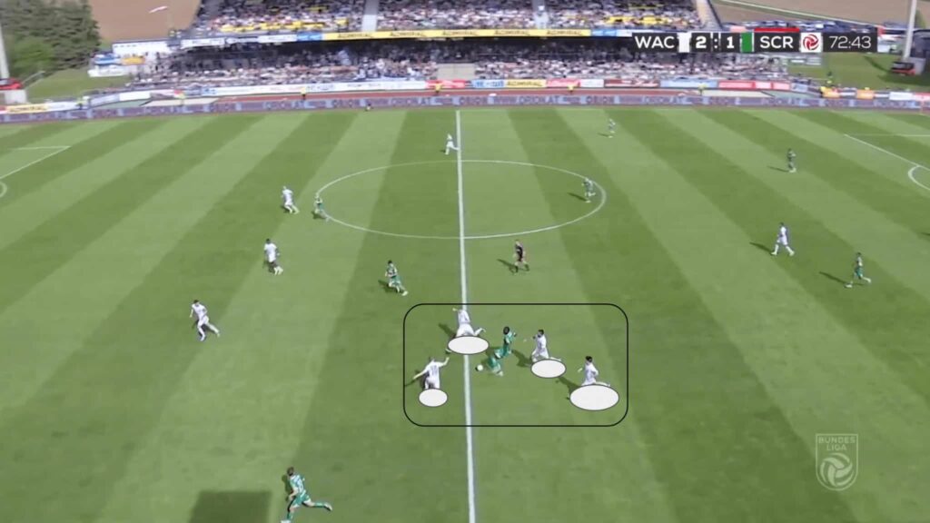 Η Βόλσφμπεργκερ έχει τη νοοτροπία του ΠΑΟΚ, αν και δεν χρησιμοποιεί ίδιο σύστημα. 1) Πίεση για repress και γρήγορη επίθεση. 2) Κινήσεις ώστε στη μεγάλη περιοχή να «πατήσουν» όσο το δυνατόν περισσότεροι παίκτες 3) Φορ που «δουλεύει» για την ομάδα και την τακτική.
