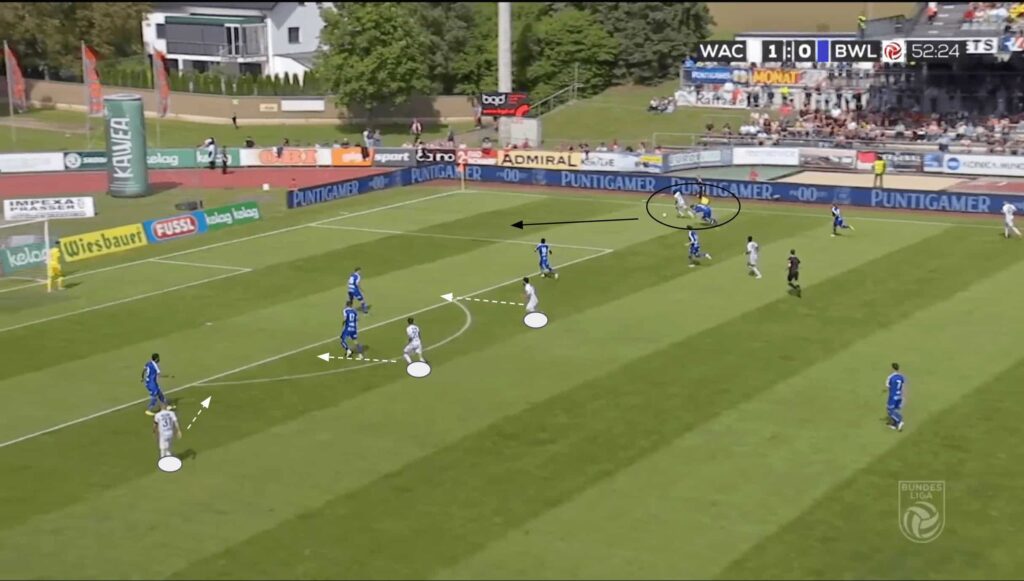 Ένα βασικό στοιχείο στην επιτυχία της Βόλφσμπεργκερ είναι η επίθεση από τα άκρα, με μεγάλη συμβολή των πλάγιων μπακ.