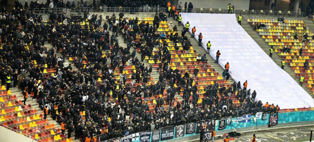 Την ίδια ώρα οι πρώτοι φίλαθλοι του ΠΑΟΚ έχουν ήδη πάρει τις θέσεις τους στις κερκίδες της «National Arena»