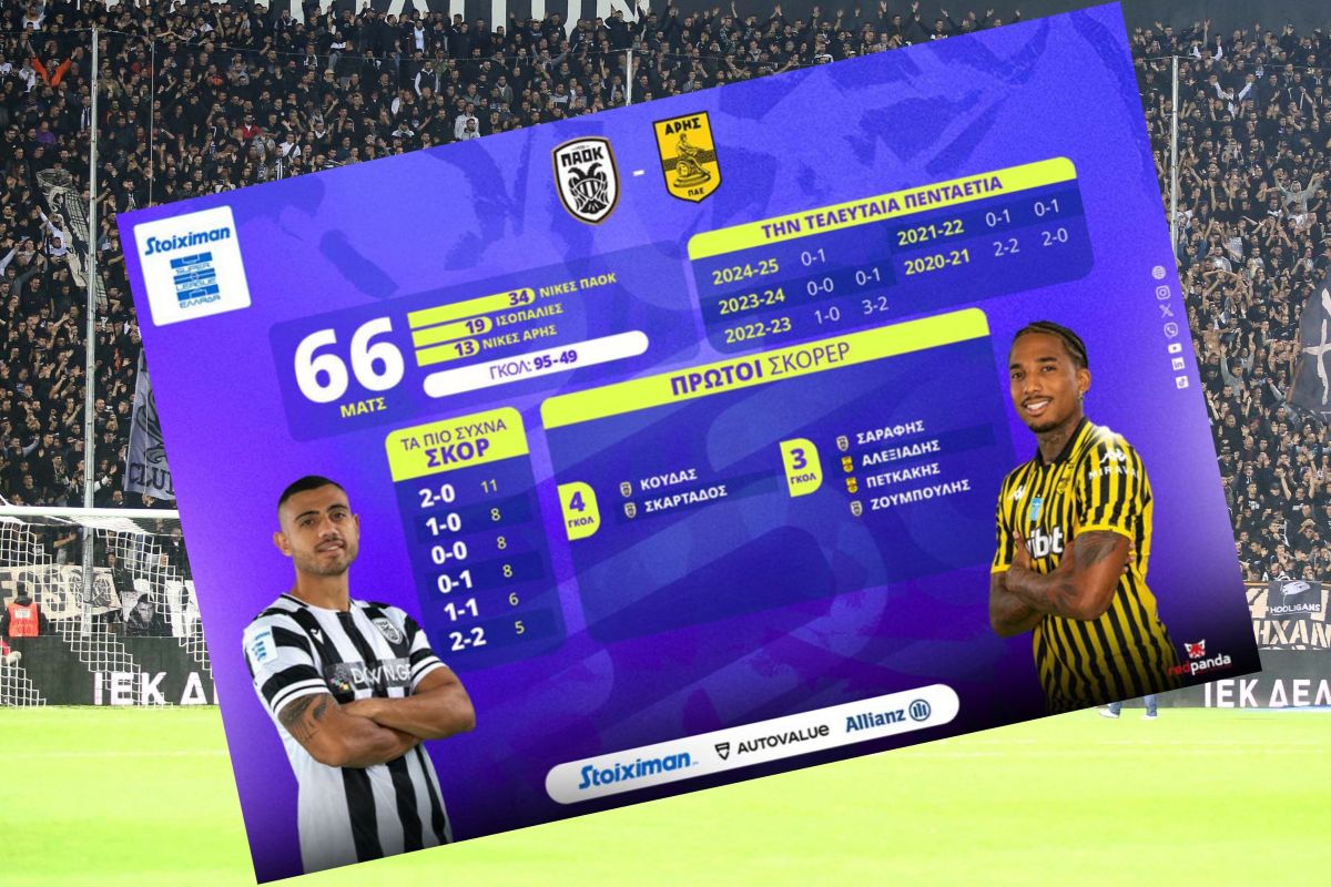 Την περσινή σεζόν, στα δύο ματς της κανονικής διάρκειας του πρωταθλήματος, ο Άρης έφυγε με διπλό από την Τούμπα στον Α’ Γύρο, ενώ το παιχνίδι στο «Κλεάνθης Βικελίδης» ολοκληρώθηκε χωρίς γκολ. Η πρόσφατη αναμέτρηση της Τετάρτης (3/12) έληξε ξανά ισόπαλη, με τον ΠΑΟΚ να καταγράφει τρία συνεχόμενα παιχνίδια χωρίς νίκη απέναντι στον Άρη.