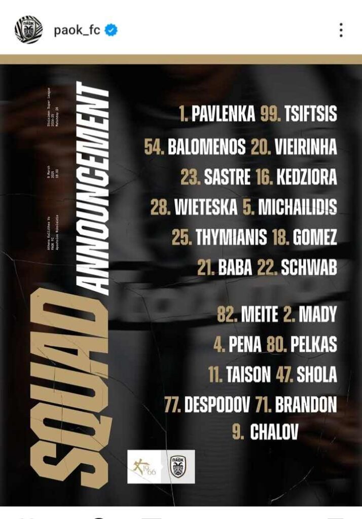 Ο ΠΑΟΚ ολοκλήρωσε την προετοιμασία του για την εκτός έδρας μάχη κόντρα στην Athens Kallithea, με τον Ράζβαν Λουτσέσκου να αφήνει εκτός τους Κοτάρσκι, λόγω ίωσης, αλλά και τον Αλί Σαμάτα που δέχθηκε ένα χτύπημα στο γόνατο στην προπόνηση.