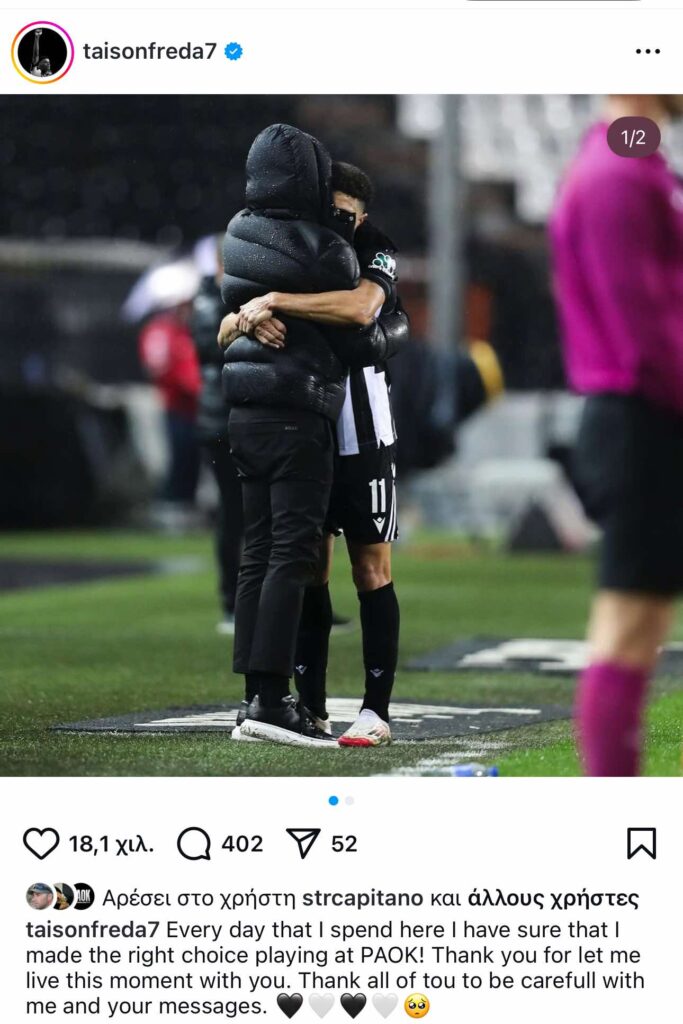 Μετά το τέλος της αναμέτρησης, στον προσωπικό του λογαριασμό στο Instagram, ανέβασε το εξής: