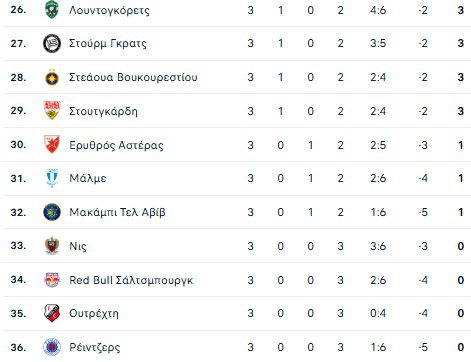 Βαθμολογία Europa League: Πως διαμορφώθηκε
