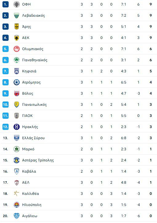 Τα αποτελέσματα της 3ης αγωνιστικής