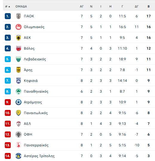Μικρές ανακατατάξεις είχαμε στη βαθμολογία της Super League μετά το τέλος των τριών αγώνων του Σαββάτου (25/10). Το πρόγραμμα να ολοκληρώνεται αύριο, Κυριακή, με άλλα 4 παιχνίδια.