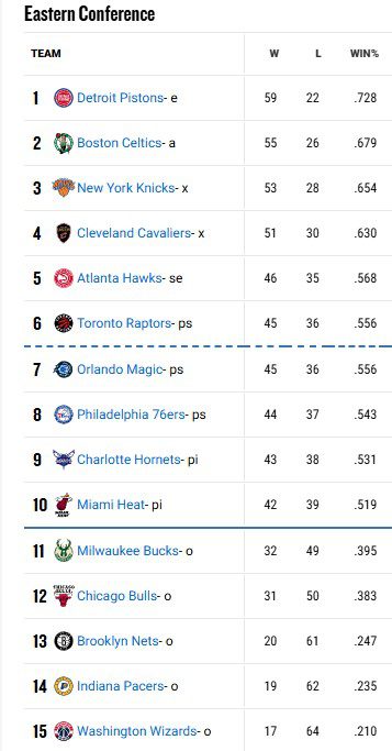 Οι Ντιτρόιτ Πίστονς πέρασαν από την έδρα των Σάρλοτ Χόρνετς με 118-100, «σβήνοντας» τις ελπίδες των γηπεδούχων για απευθείας πρόκριση, ενώ οι Μαϊάμι Χιτ επικράτησαν εύκολα των Ουάσινγκτον Γουίζαρντς με 140-117, με τους τελευταίους να «κλειδώνουν» το χειρότερο ρεκόρ της σεζόν.