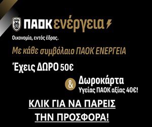Με την ΠΑΟΚ Ενέργεια είστε πάντα κερδισμένοι. Συγκεκριμένα, μ κάθε νέα σύνδεση δώρο 50 ευρώ μετρητά και μια προνομιακή κάρτα υγείας. Στείλε ονοματεπώνυμο και τηλέφωνο στο paoktodaymedia@gmail.com και θα ενημερωθείς για τη μεγάλη προσφορά!